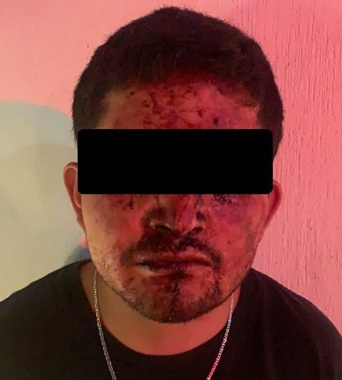 Los elementos fueron en persecución del sospechoso hasta que lo alcanzaron y detuvieron, percatándose que presentaba una herida cortante en la frente, la cual le provocó una hemorragia y por lo que tenía sangre en todo el rostro, aunque su vida no estaba el peligro.