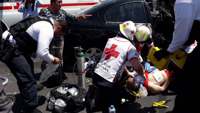 Otros conductores que transitaban por la zona reportaron el encontronazo al servicio de emergencias 911, por lo que de inmediato se trasladaron al lugar paramédicos de la Cruz Roja y del ISSEA en las ambulancias AGS-021 y ECO-333, respectivamente, que auxiliaron a los dos heridos.