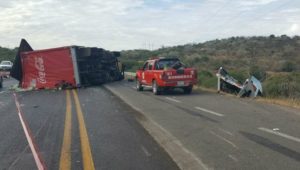 CALVILLO, AGS.- Dos muertos y un lesionado dejó como saldo un fuerte accidente tipo choque-volcadura entre una camioneta y un camión refresquero de la empresa Coca Cola.