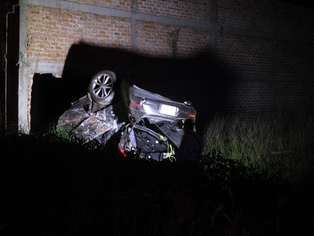 Con el golpe, el automovilista perdió el control del coche, por lo que también salió de la carpeta de asfalto y se volcó, dando varias volteretas y estrellándose contra la pared de una bodega de un predio.