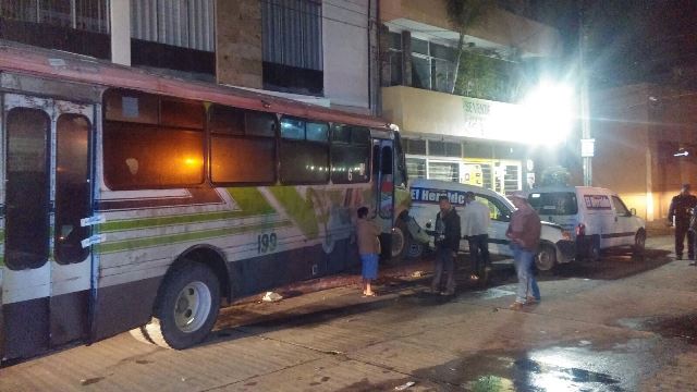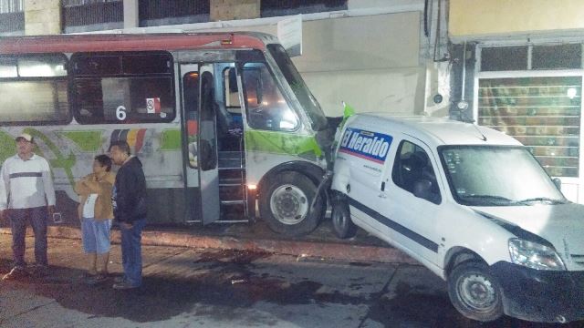 Tras el fuerte encontronazo, el camión urbano se proyectó hacia el lado izquierdo y con su parte frontal impactó la parte posterior de una camioneta estacionada marca Renault, en color blanco, con placas AE-35-477, propiedad de un diario de la ciudad.