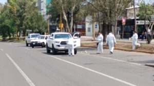 Los elementos marcaron varios indicios sobre la vía pública, tanto en la camioneta de la víctima como en la motocicleta de los ejecutores.