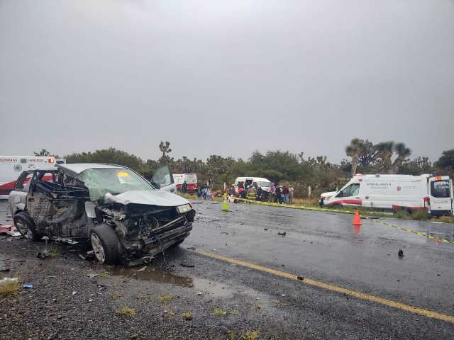 TRANCOSO, ZAC.- Tres muertos y once lesionados, entre ellos seis menores de edad, fue el sangriento saldo que dejó un accidente tipo choque entre una camioneta y una combi de transporte público.