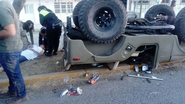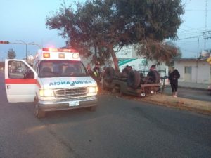 LAGOS DE MORENO, JAL.- Cuatro lesionados dejó como saldo la volcadura de una camioneta en esta cabecera municipal, al parecer provocada por una falla mecánica.