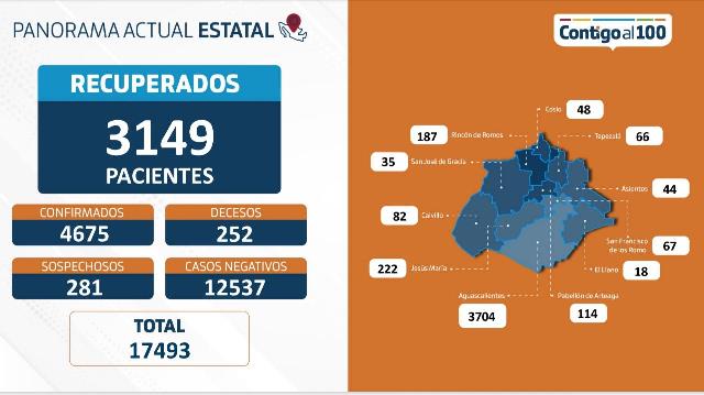En cuanto al número de contagios, se reporta una cantidad de 4,675 contagios acumulados, 75 más en 24 horas, además de 281 personas sospechosas de contraer el virus y 679 pacientes activos, de los cuales 106 se encuentran hospitalizados, 50 en calidad de grave y 56 en estado de salud muy grave en diferentes instituciones de Salud.