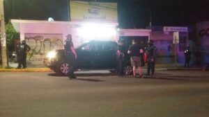 Por lo que los policías encendieron la sirena y torreta para ir tras ellos, marcándoles el alto por parlante, contrario a obedecer, el conductor hizo caso omiso e incluso al emparejarse a ellos el conductor levantó su mano derecha apuntando al oficial con lo que parecía ser un arma de fuego corta, por lo que al ver en peligro la vida, el uniformado utilizó su arma de cargo y efectuó dos disparos, impactando a la camioneta en el rin y llanta izquierda trasera, logrando ponchar la llanta del vehículo en fuga, por lo que tras detenerse los sujetos descendieron de la unidad y se dieron a la fuga a pie tierra.