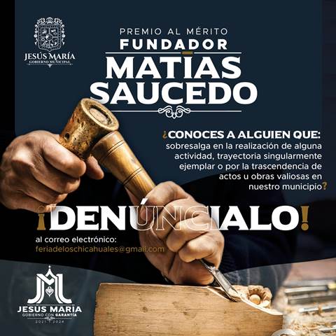 JESÚS MARÍA, AGS.- Con el propósito de reconocer y premiar a aquellas personas que en el ámbito de sus competencias han destacado y puesto en alto el nombre de Jesús María, abre la convocatoria para el premio al mérito ciudadano “Fundador Matías Saucedo”.