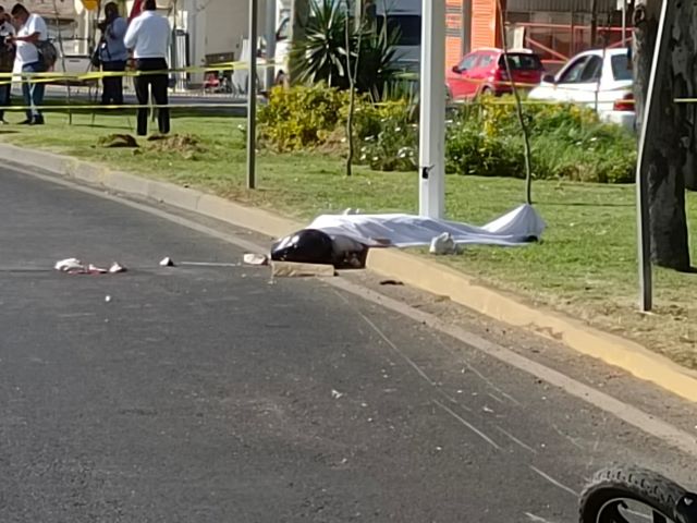 Héctor Javier quedó tirado entre el camellón central y el carril izquierdo de la avenida, mientras que la jovencita embarazada terminó sobre el arroyo vehicular.