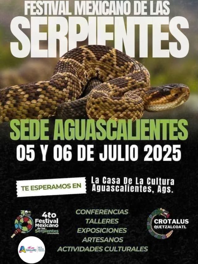 AGUASCALIENTES, AGS.- Aguascalientes será sede del 4.º Festival Mexicano de las Serpientes, que se llevará a cabo los días 5 y 6 de julio en la Casa de la Cultura de Aguascalientes.