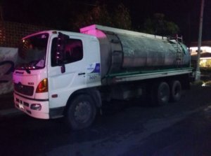 En ese lugar, sobre el carril izquierdo de la circulación sur-norte, transitaba a baja velocidad una pipa propiedad del Municipio de Aguascalientes, marca Hino 500, en color blanco, con número económico 3205 y con placas locales, que en ocasiones se detenía unos instantes para regar el camellón central.