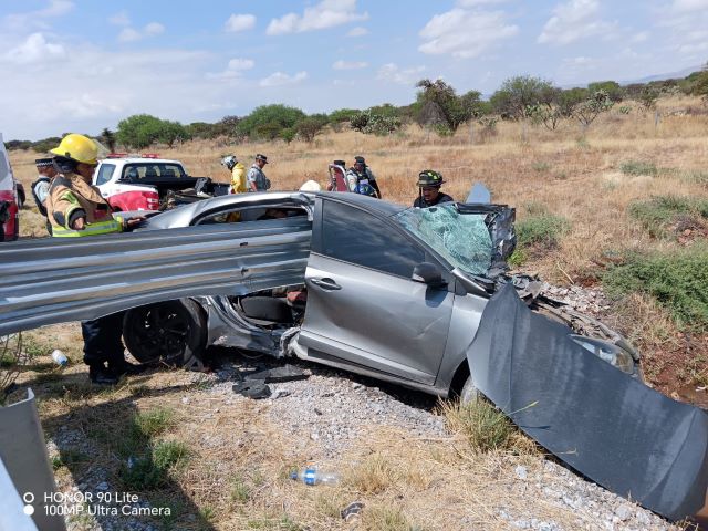 GUADALUPE, ZAC.- Un aguascalentense sufrió lesiones de consideración tras un accidente ocurrido en la autopista Aguascalientes-Zacatecas, cerca de la caseta de cobro de la carretera federal 45.