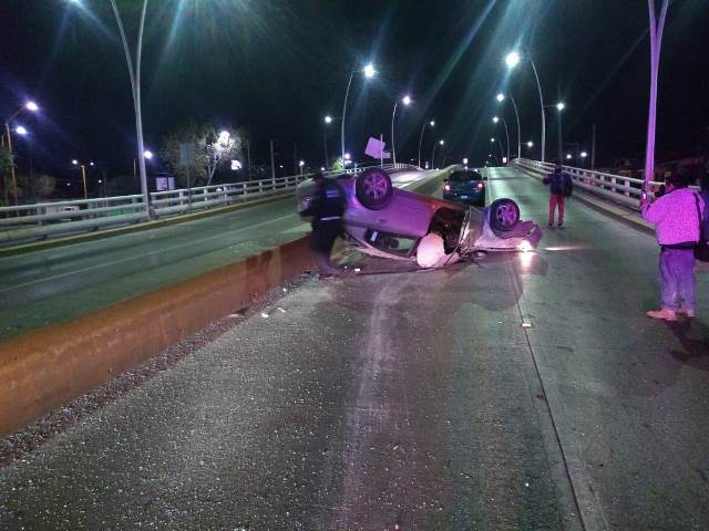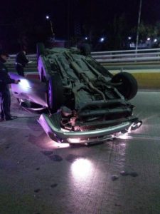 Al llegar al puente vehicular ubicado a la altura de la avenida Gabriela Mistral, se impactó contra el inicio del muro de contención, el cual le sirvió de rampa y provocó que el coche se volcara, aunque también golpeó un señalamiento.