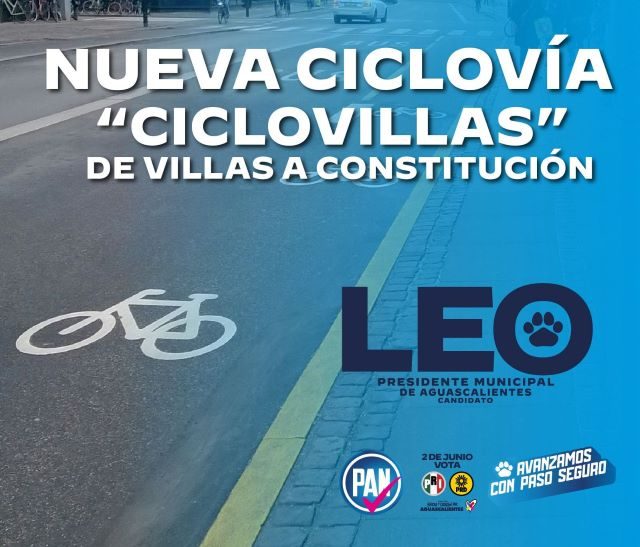 AGUASCALIENTES, AGS.- Como parte de su plataforma política, Leo Montañez, candidato de la coalición Fuerza y Corazón por Aguascalientes a la Presidencia Municipal de la capital, dio a conocer una de sus propuestas en materia de movilidad: la habilitación de una nueva ciclovía para las y los ciudadanos que habitan el nororiente del municipio capital.