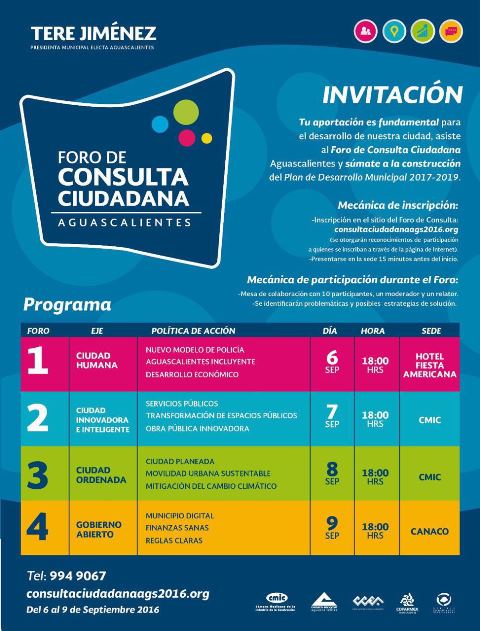 El foro de Consulta Ciudadana tomará como base la plataforma política presentada ante el IEEAGS, las propuestas realizadas durante la campaña electoral y las complementará con mesas de trabajo en la que participarán expertos, moderadores y ciudadanos con la clara misión de homologar las propuestas bajo una metodología única.