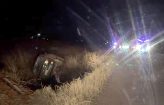 En ese punto se encontraba un montón de tierra, que sirvió como rampa y provocó que la camioneta se clavara de frente, hacia abajo, por donde pase un río, tras de lo cual dio una vuelta de 360 grados y terminó recostada sobre su lado derecho.