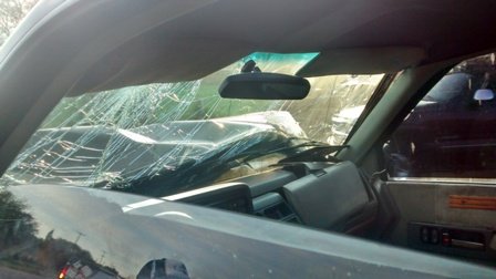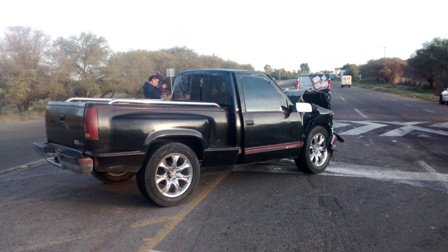 Ante esto se trasladó al lugar la unidad 578 de la Policía Vial, cuyo elemento se encontró con una camioneta marca GMC Silverado negra 1500 con placas AE-51172, con el frente completamente destrozado.