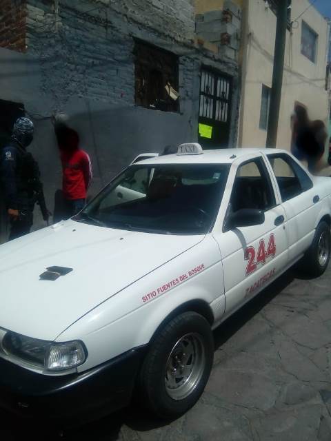 Los oficiales de la PEP se encontraban realizando recorridos de seguridad en Zacatecas cuando al circular sobre la calle Aguadores de la colonia La Pinta detectaron que el operador del taxi marcado con el número económico 244 con base en la capital y su acompañante mostraron actitud sospechosa ante la presencia policial.