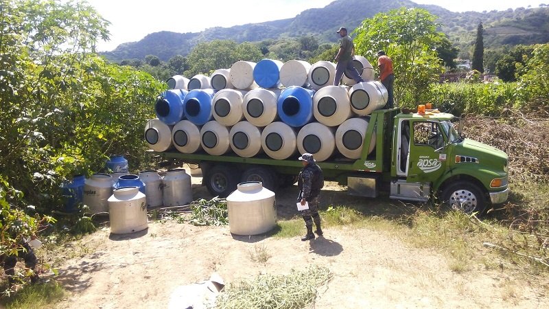 En el poblado de Ahuisculco se aseguraron dos camionetas con caja seca en donde se localizaron 8 cisternas con capacidad de mil litros cada una, cuatro de estas llenas de hidrocarburo presuntamente robado, cuatro más se encontraban vacías.