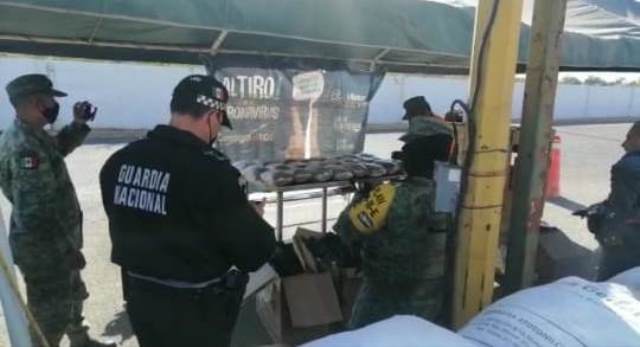 AGUASCALIENTES, AGS.- Mediante un operativo conjunto, elementos de la Secretaría de la Defensa Nacional (SEDENA) y de la Guardia Nacional interceptaron y aseguraron un cargamento de 30 kilos de marihuana que era transportado en un autobús de pasajeros que cubría el viaje Guadalajara, Jalisco, a Nuevo Laredo, Tamaulipas.