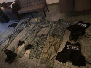 Al desahogar los cateos, los elementos ministeriales lograron el aseguramiento de 9 armas de fuego largas, un arma de fuego corta, 76 cargadores, 2 mil 780 tiros útiles de los calibres 7.26 x 39 y .50, 17 chalecos, 22 pecheras, ropa táctica con las características de la utilizada por la Guardia Nacional, así como prendas con las siglas de un grupo de la delincuencia organizada, boinas y botas militares, además de diversos equipos de telefonía celular.