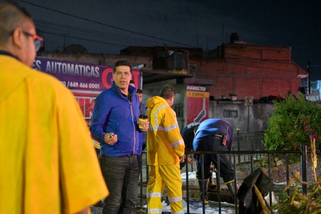 AGUASCALIENTES, AGS.- Derivado de las intensas lluvias que se registraron la noche del viernes, el presidente municipal Leo Montañez recorrió zonas afectadas en distintos puntos de la ciudad.