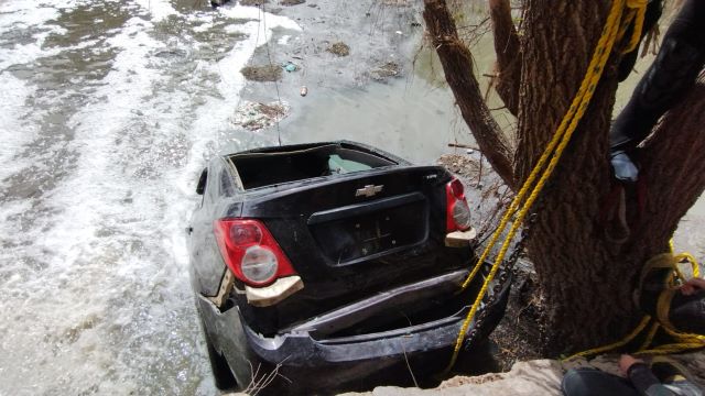 Por lo anterior, el coche salió del camino y cayó al fondo del arroyo, donde quedó completamente sumergido en el agua.