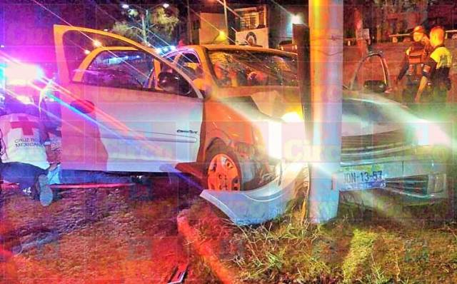 LAGOS DE MORENO, JAL.- Cinco lesionados, tres de ellos menores de edad, fue el resultado de un aparatoso accidente ocurrido en esta cabecera municipal, luego de que un automóvil se estrelló contra un poste debido a que el chofer se encontraba alcoholizado y lo desplazaba a exceso de velocidad.