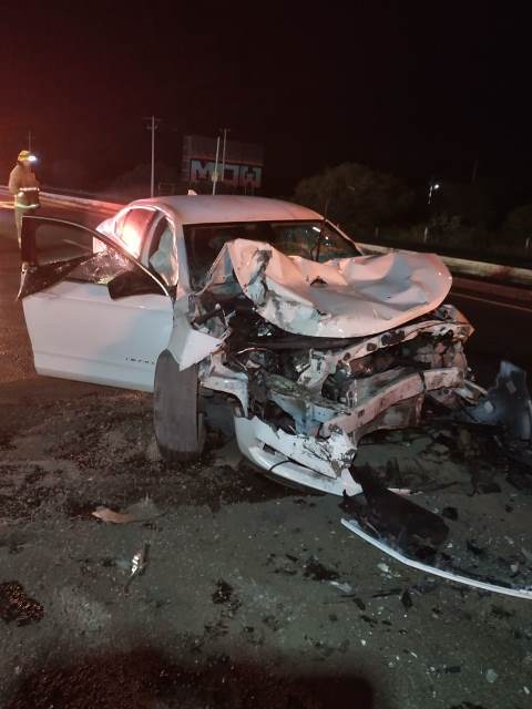 De inmediato Bomberos Estatales, elementos de la Guardia Nacional y paramédicos de la Cruz Roja se trasladaron al sitio del reporte, donde observaron un quinta rueda de la marca Kenworth, color blanco, modelo 2015, número económico 185, con razón social Cementos Cruz Azul, el cual remolcaba una plataforma con cemento del servicio público federal, asimismo, se encontraba un auto Chevrolet Impala, modelo 2007, en color blanco, con placas del Estado de Chihuahua, que presentaba daños considerables en la parte frontal.