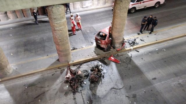 - Se estrelló contra un pilar de concreto del camellón central