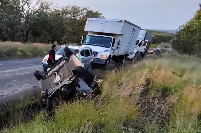 TEÚL DE GONZÁLEZ ORTEGA, ZAC.- Un automovilista resultó lesionado tras protagonizar un choque frontal contra un camión de carga y posterior volcadura.
