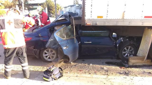 AGUASCALIENTES, AGS.- Un joven se salvó de morir luego de que al volante de su automóvil se metió debajo de la caja de un camión de carga, al poniente de la ciudad, aunque quedó prensado en la destrozada cabina y sufrió lesiones de regulares a graves, por lo que tras ser rescatado fue trasladado a un hospital para su pronta atención médica.
