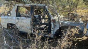 De igual manera, se localizaron y aseguraron dos chasis correspondientes a una Jeep Grand Evenue modelo 2025 tipo Pick-Up y una Jeep Grand Cherokee modelo 2015, ambos desmantelados; una placa de circulación de una camioneta Kia Seltos modelo 2022, con reporte de robo; además de cabinas desmanteladas de vehículos Ford y Nissan Versa, una batea de camioneta Ford Ranger, así como camionetas Toyota Land Cruiser 70 y Mazda CX-5 modelo 2008, también en estado de desmantelamiento.