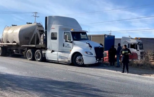Al arribar confirmaron el accidente en el que participaron una camioneta en color rojo y un camión tipo quinta rueda.