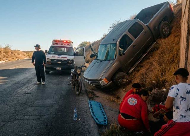 RÍO GRANDE, ZAC.- Una camioneta se desbarrancó y el conductor resultó lesionado, por lo que fue trasladado a un hospital a recibir atención médica.