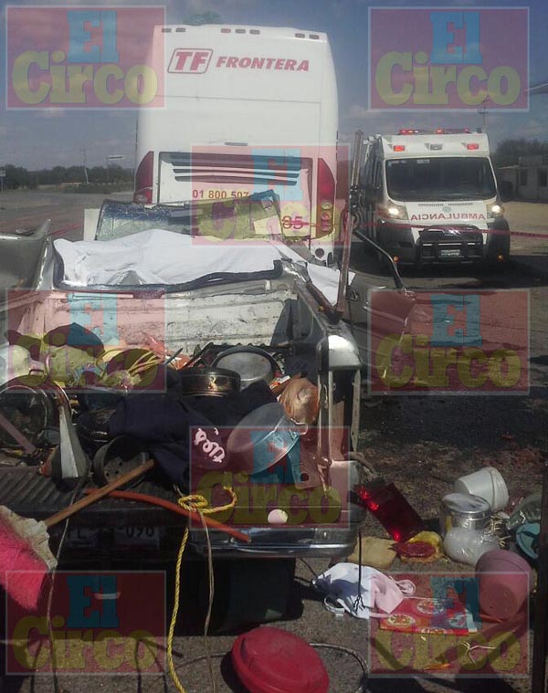 PÁNFILO NATERA, ZAC.- Dos muertos y un lesionado de gravedad fue el saldo que dejó un fuerte accidente en esta cabecera municipal, luego de que una camioneta tripulada por las víctimas se estrelló contra la parte posterior de un autobús.