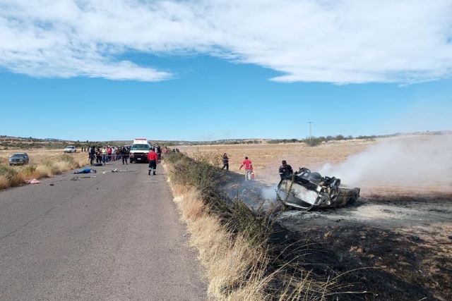 SAÍN ALTO, ZAC.- Una camioneta se volcó e incendió en la carretera Moroñes Cañas-Saín Alto, dejando un saldo de tres muertos y dos lesionados.