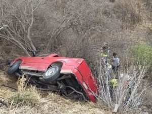 A causa de lo anterior, el operador perdió el control del volante, por lo que la camioneta abandonó la carpeta de asfalto y se volcó aparatosamente, cayendo a un barranco.