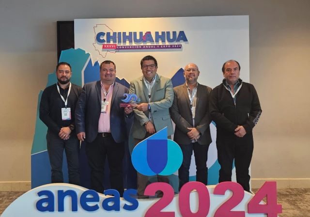 JESÚS MARÍA, AGS.- La Comisión de Agua Potable, Alcantarillado y Saneamiento de Jesús María (CAPAS) recibió el premio nacional de Cultura Hídrica en la categoría de Organismos Operadores de 11 mil a 50 mil tomas en la convención anual y expo ANEAS 2024, el evento más importante en materia de agua y saneamiento en América Latina, que este año tuvo lugar en la ciudad de Chihuahua.