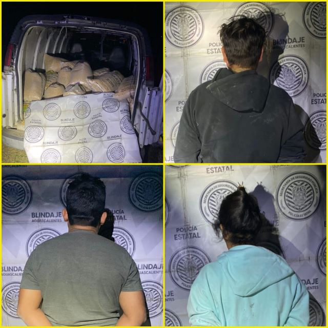 Fueron elementos de la Policía Estatal, en conjunto con policías municipales de San Francisco de los Romo que realizaban su recorrido de vigilancia sobre la terracería paralela a las vías del tren a la altura de la Palapa El Huizache del Ejido La Guayana, observaron una camioneta tipo panel de la marca Chevrolet, en color blanco, con placas de circulación del Estado de Aguascalientes, y detectaron a tres personas que se encontraban subiendo al vehículo costales en color blanco, mismos que al percatarse de la presencia de los policías intentaron huir a pie tierra sin conseguirlo debido a que fueron asegurados de inmediato.