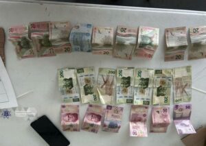 De esta manera se le encontró en posesión de más de 1,800 pesos en efectivo, así como un arma punzocortante azul.