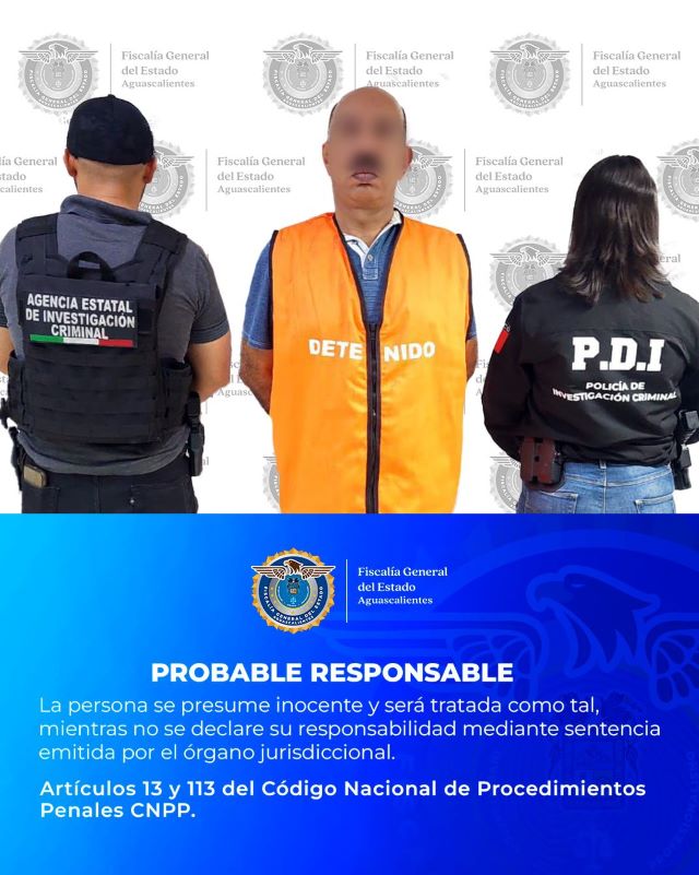 AGUASCALIENTES, AGS.- La Fiscalía General del Estado de Aguascalientes, a través de la Agencia de Investigación Criminal, logró la detención de un ex comandante de la extinta Policía Federal, identificado como Rodolfo “N”, señalado por su probable responsabilidad en los delitos de violación y violación agravada en contra de una menor de edad.