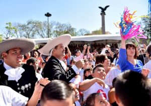 Al desfile también asistió Enrique Morán Faz, secretario general de Gobierno; José Ángel González Serna, presidente del Patronato de la Feria Nacional de San Marcos; Teresa Jiménez Esquivel, alcaldesa de Aguascalientes; Irma Medrano Parada, secretaria de Turismo; entre otras autoridades.