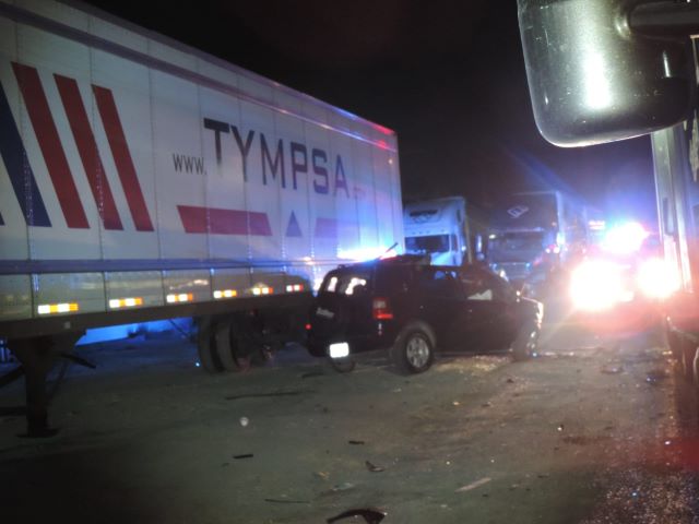 Se estrelló contra el semi-remolque de un tráiler Kenworth, con número económico 076, en color gris y con placas de circulación 02BE6N del Servicio Público Federal, propiedad de la empresa Transportes Delgado, operado por un chofer de entre 40 a 45 años de edad.