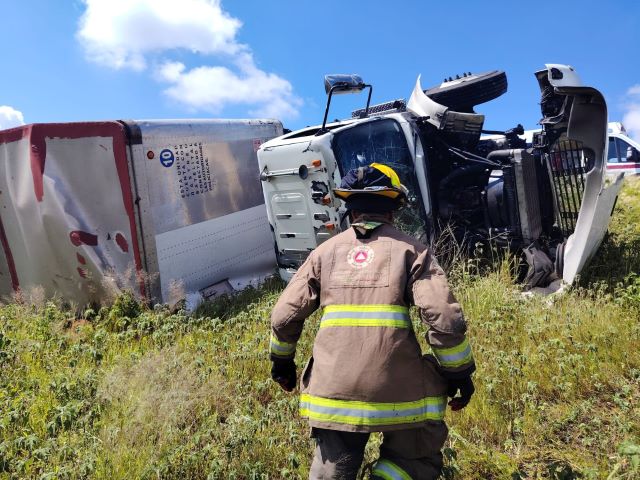 Testigos lo reportaron a los servicios de emergencia y provocaron la movilización de elementos de las Coordinaciones Estatal y Municipal de Protección Civil, que confirmaron la volcadura de un tráiler que transportaba colchones, que quedó sobre la vialidad.