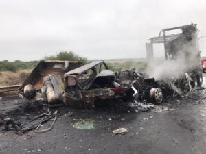 La inmensa nube de humo negro que se visualizaba a lo lejos era porque el combustible que utilizaba el tráiler era diésel, aunado que transportaba cuero de puerco para elaborar chicharrón y de la camioneta Pick-Up carburaba con gas LP, la cual tenía dos tanques de 200 litros tipo salchicha a los costados de la cabina, estos dos componentes complicaron el enfriamiento de las unidades siniestradas.