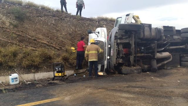 RÍO GRANDE, ZAC.- Un chofer murió tras la volcadura de un camión cisterna tipo pipa que transportaba material peligroso.