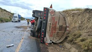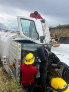 Al arribar, confirmaron que se trataba de la volcadura de una pipa con material peligroso y al tratar de auxiliar al operador verificaron que ya había fallecido.