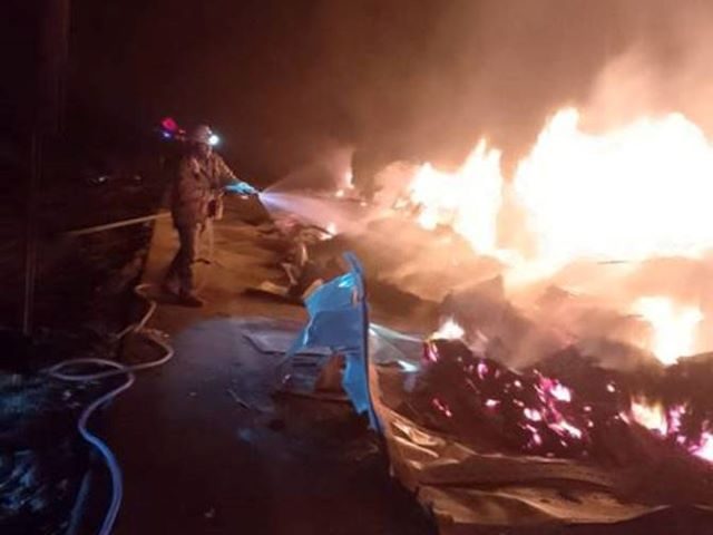 Uno los tráileres transportaba cartón y el otro tablaroca, por lo que tras colisionar entre si se incendiaron y las llamas los abrasaron por completo.