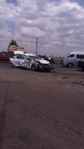 María del Rosario, de 50 años de edad, conducía una camioneta Toyota Corolla, color blanco, modelo 2017, cuando en determinado momento impactó con la parte frontal a una camioneta Chevrolet Colorado color café modelo 2013, la cual era conducida por quien dijo llamarse Ambrosio, quien al recibir el golpe se salió del camino hasta impactarse con una de las barras metálicas.