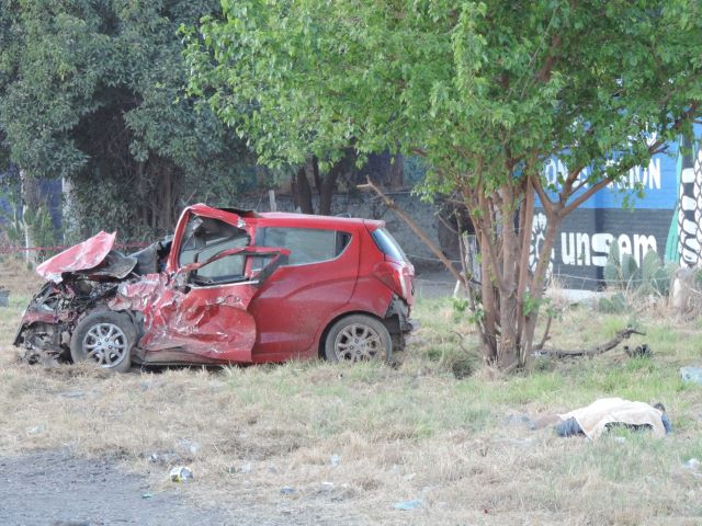 PABELLÓN DE ARTEAGA, AGS.- Saldo de un joven muerto y otro lesionado dejó un accidente en esta localidad luego de que un automóvil chocó de frente contra una camioneta y después fue embestido por un tráiler.